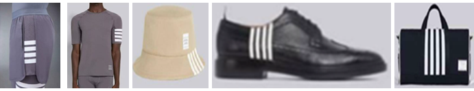Vậy là liệu nhãn hiệu ba sọc của Adidas và nhãn hiệu bốn sọc của Thom Browne có giống nhau đến mức gây nhầm lẫn hay không, dưới đây một số hình ảnh về sản phẩm của Thom Browne từ vụ kiện trước Tòa.