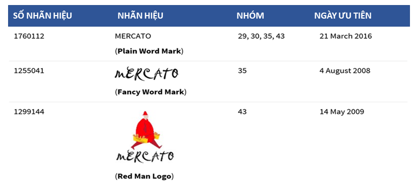 - Hủy bỏ nhãn hiệu “MERCATO” theo Đăng ký số 1760112
